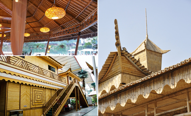 工程敘述:異形竹鋼建筑、竹編建筑、竹藝裝飾墻、竹編建筑